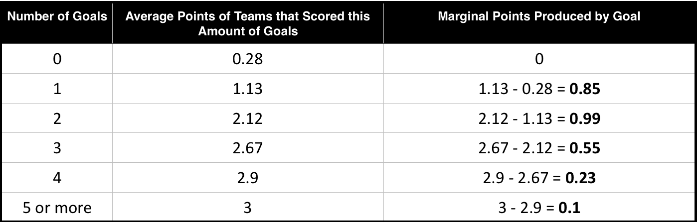 - If you want to understand more about the “Marginal Points Produced by Goals Model” I suggest reading “The Numbers Game”