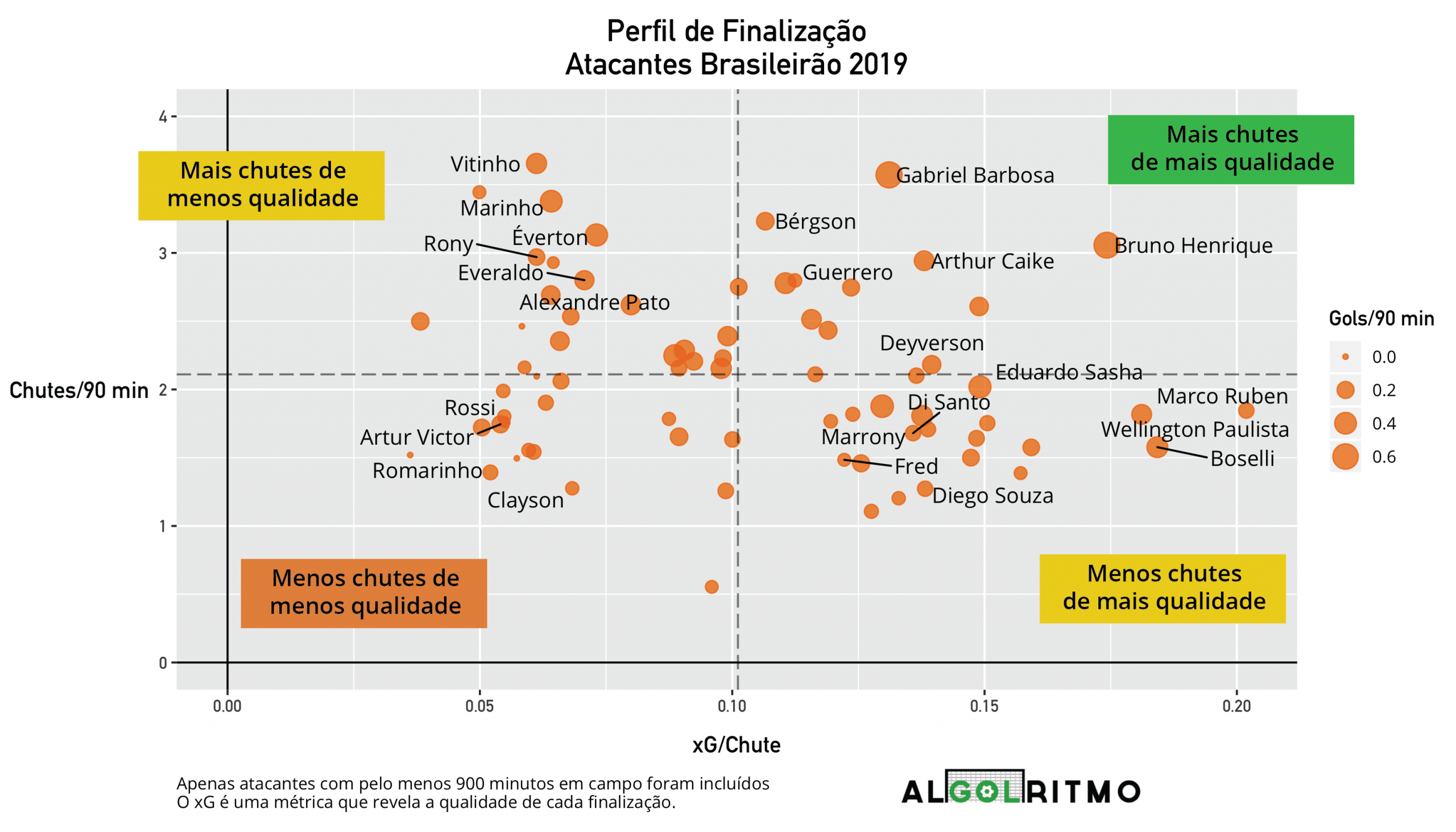 - Qualidade de cada chute (xG/Chute)