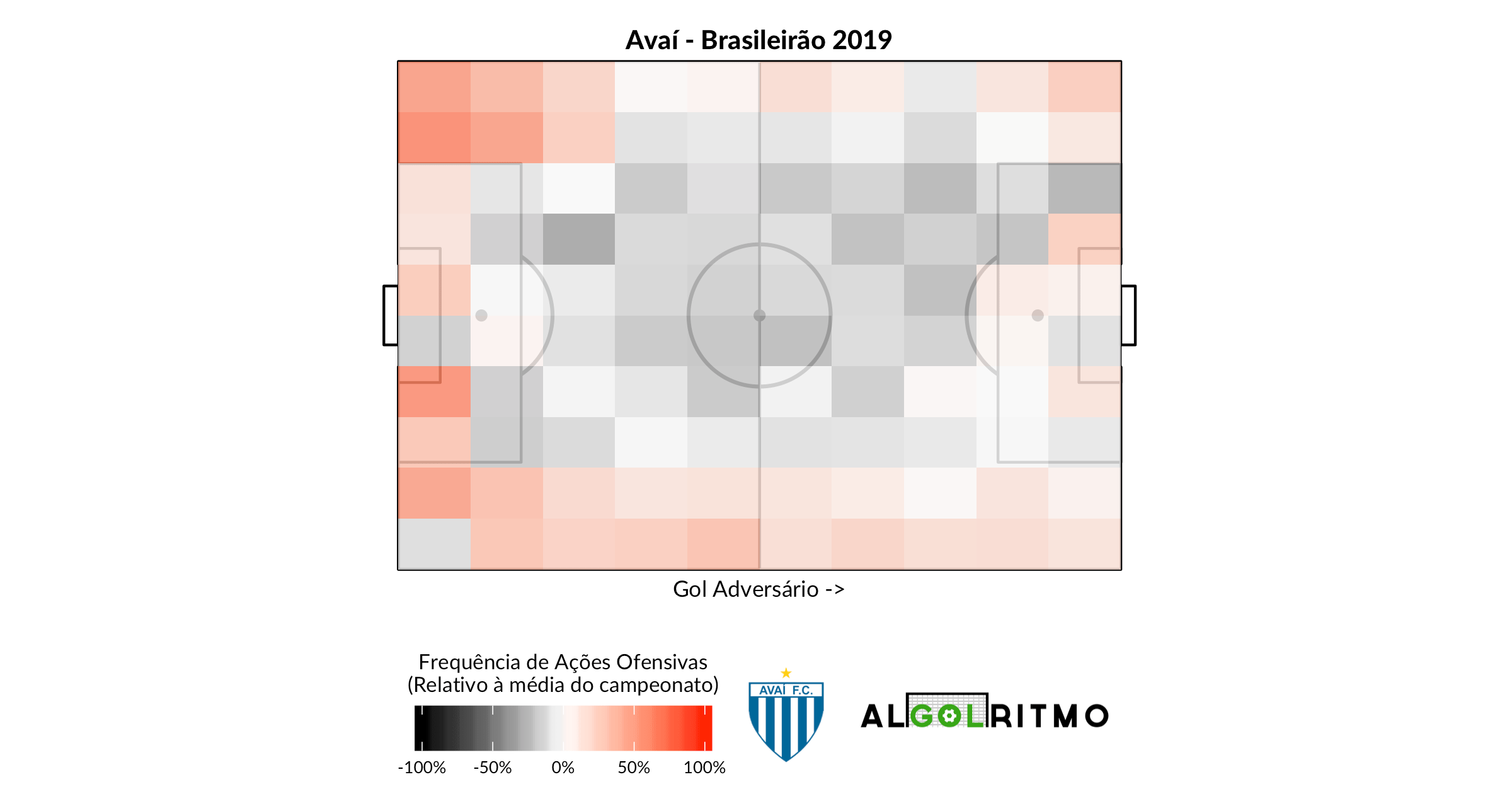 O Avaí é outro time que busca a construção pelas beiradas, especialmente pela esquerda com Lourenço ou Caio Paulista. O time não consegue explorar os espaços perto da área. Isso não seria um problema se o Avaí soubesse explorar contra ataques, mas não é o caso até o momento