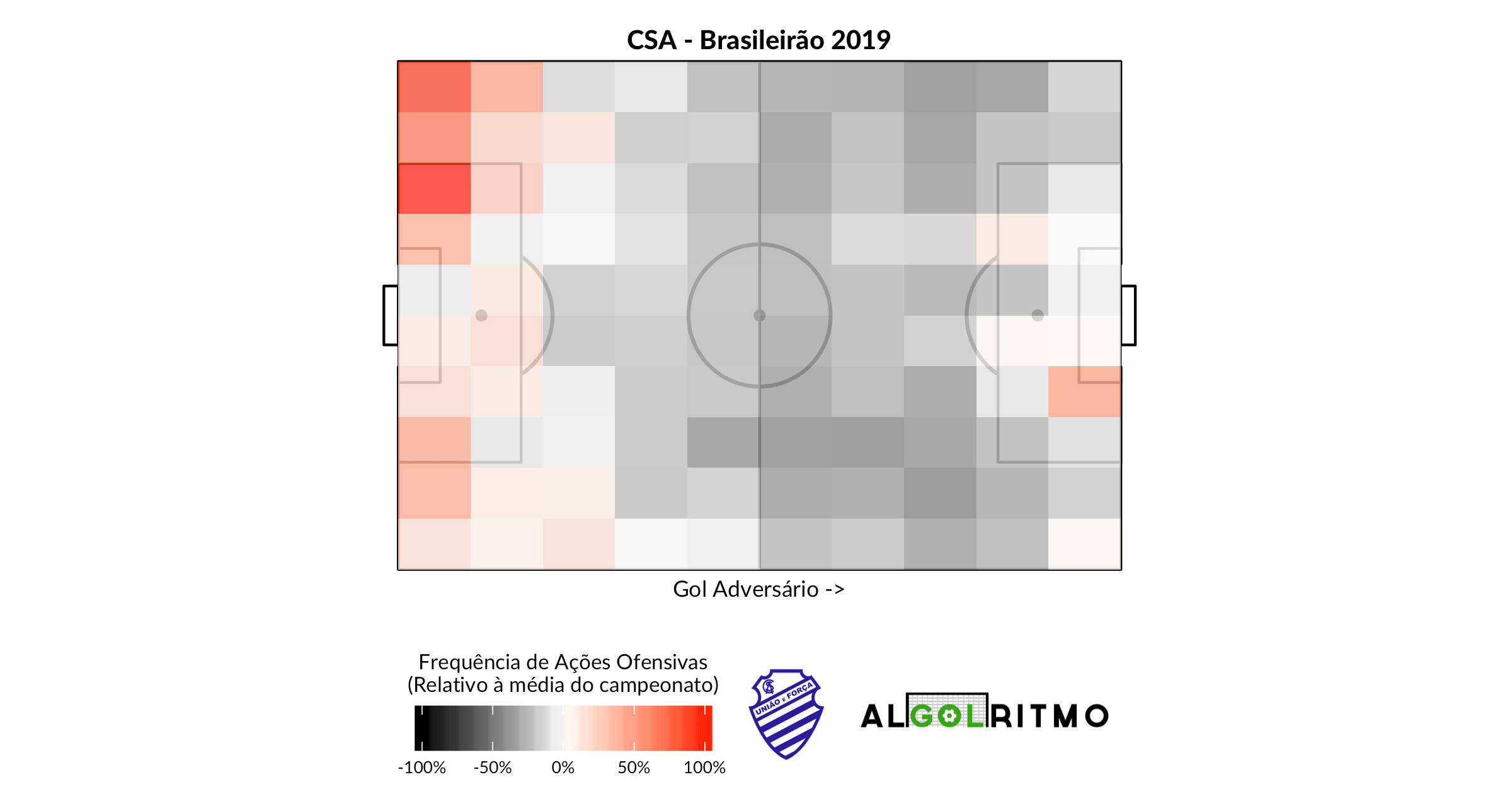 O CSA geralmente é pressionado por adversários e tem a bola muitas vezes na defesa. O time busca um jogo mais direto muitas vezes e conseguiu alguns resultados interessantes. Resta saber se será suficiente para escapar o rebaixamento