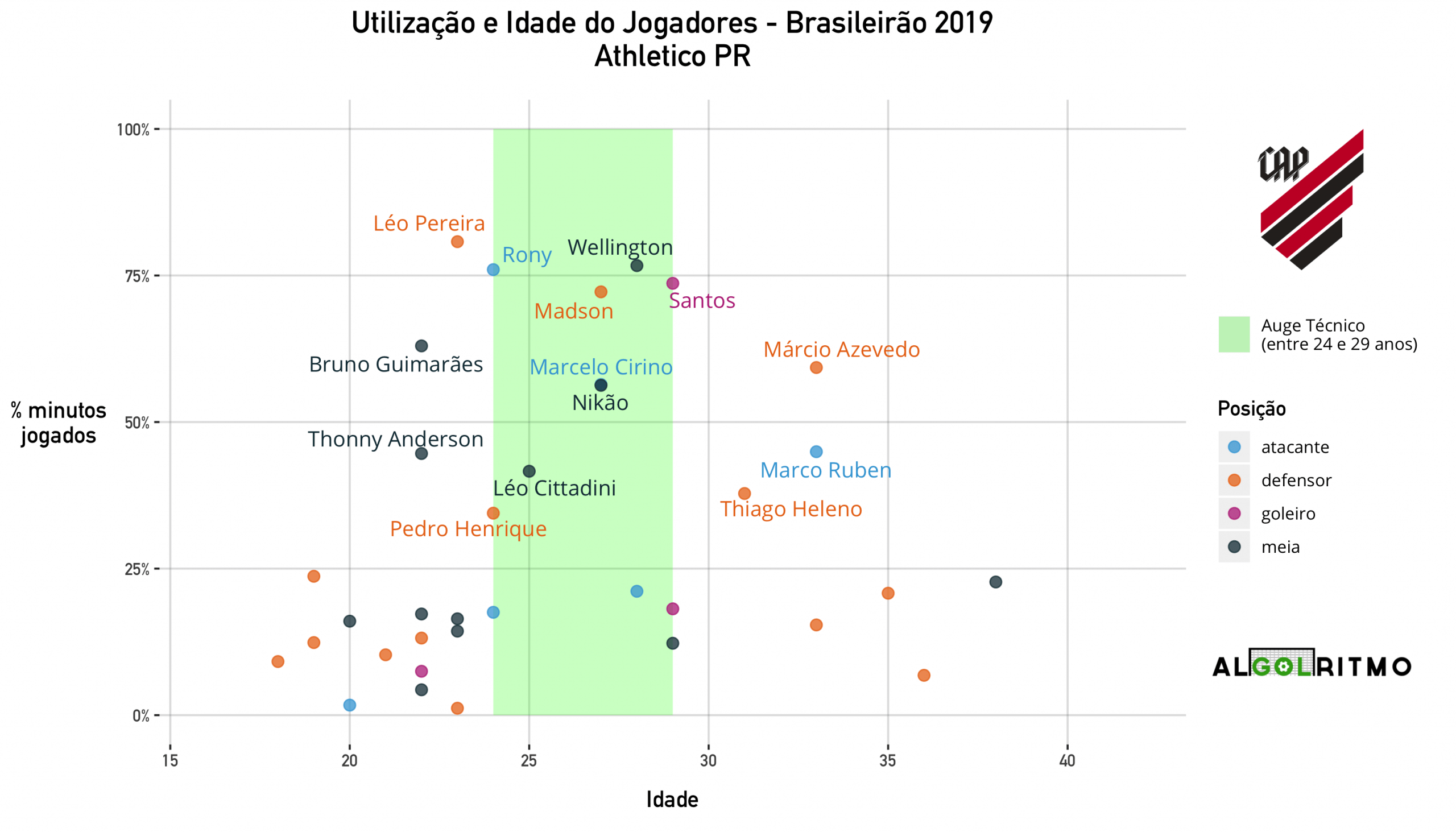 - O Athletico PR faz uma das melhores gestões de elenco do campeonato. Boa parte dos titulares tem menos de 29 anos. Uma boa mescla de experiência e juventude.