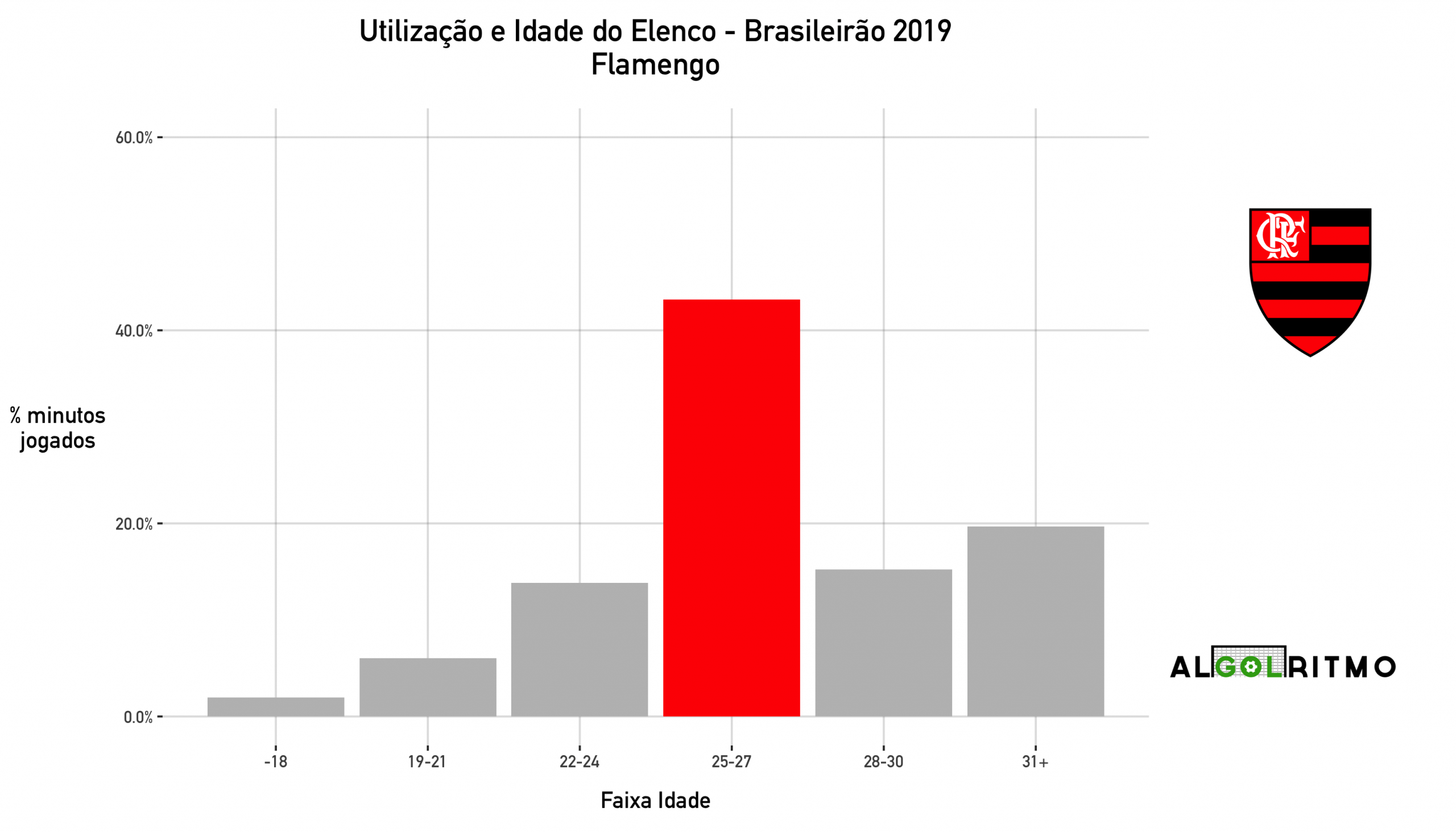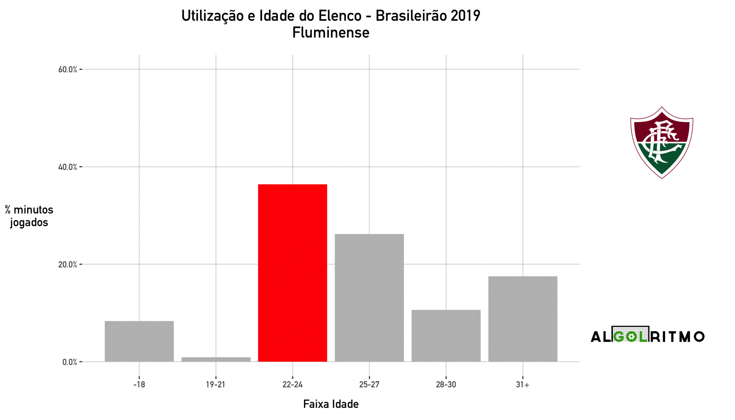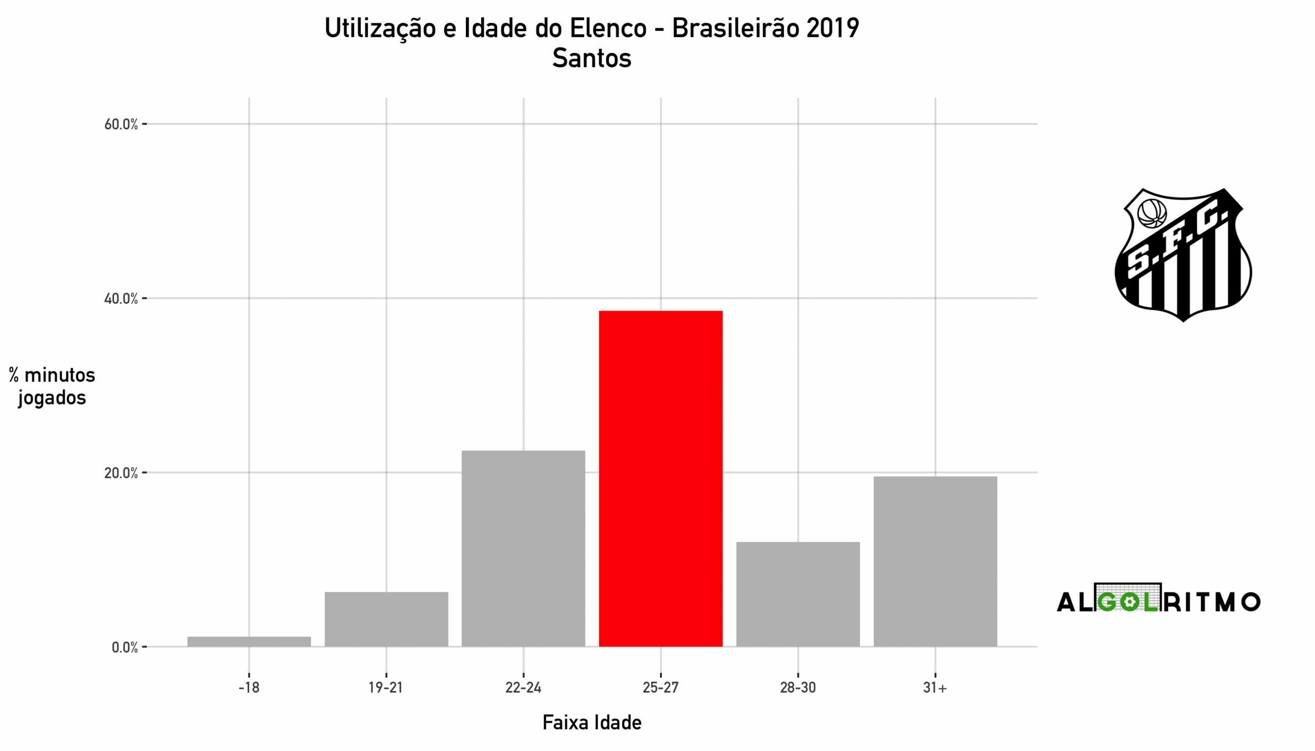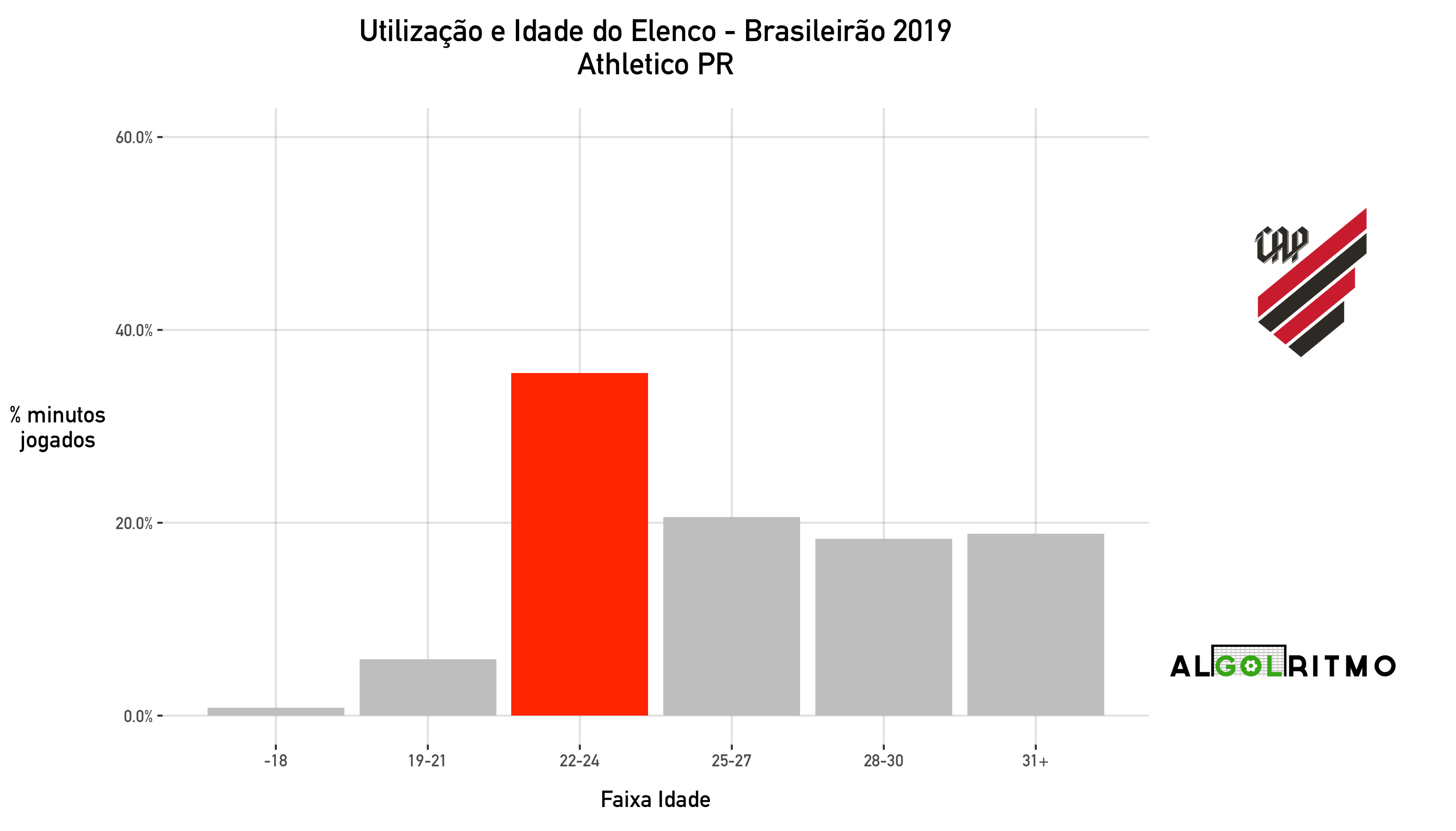 - Aqui vemos que o AthleticoPR utilizou principalmente jogadores na faixa do 22-24 anos nesse Brasileirão. O Furacão tem um time balanceado e pensa no futuro