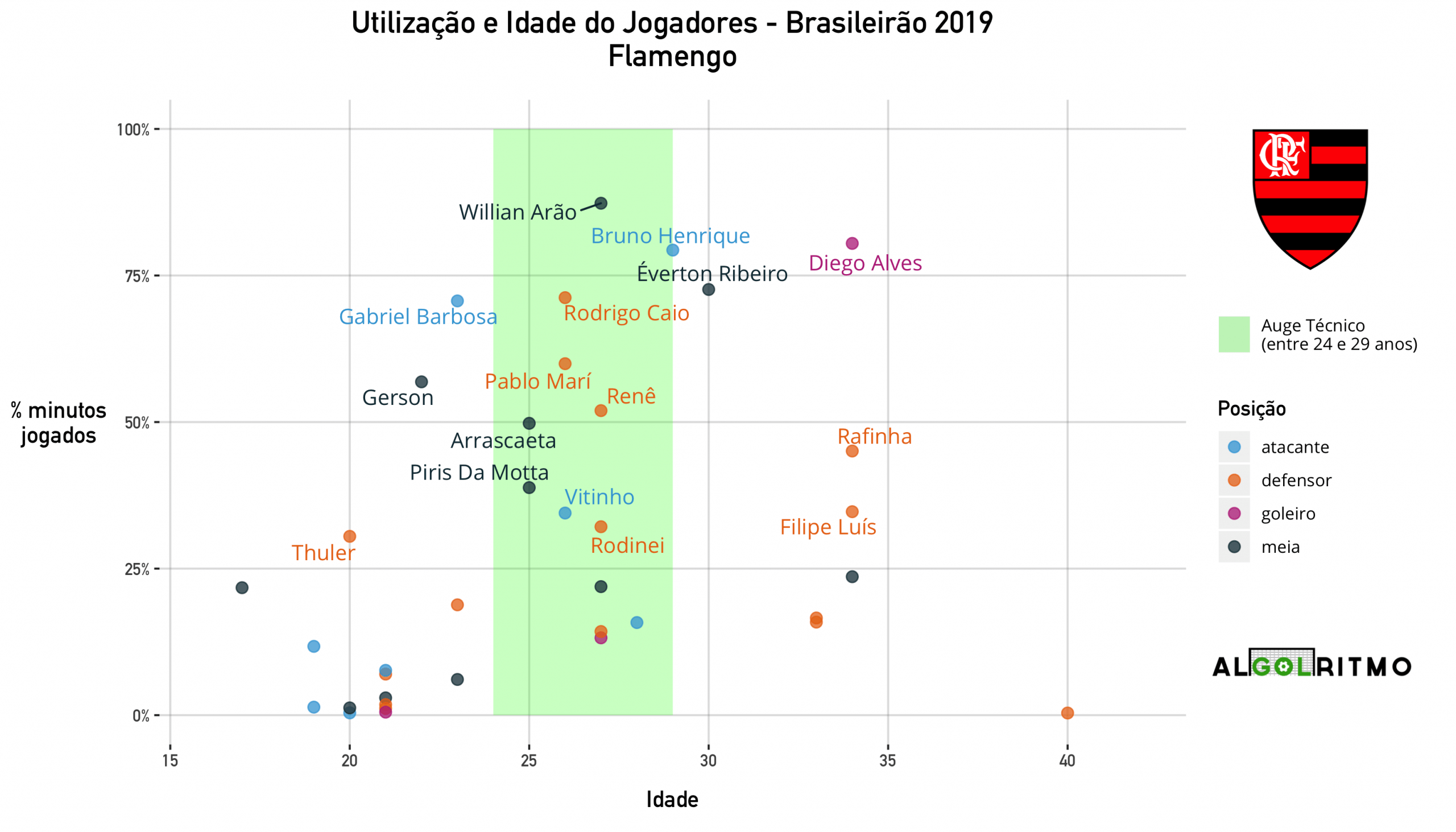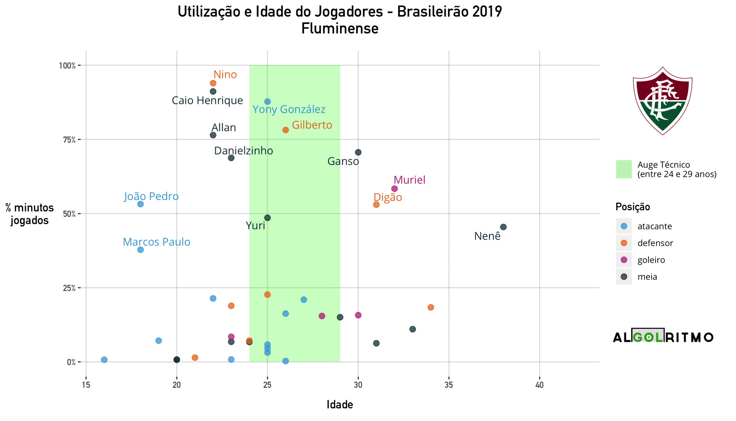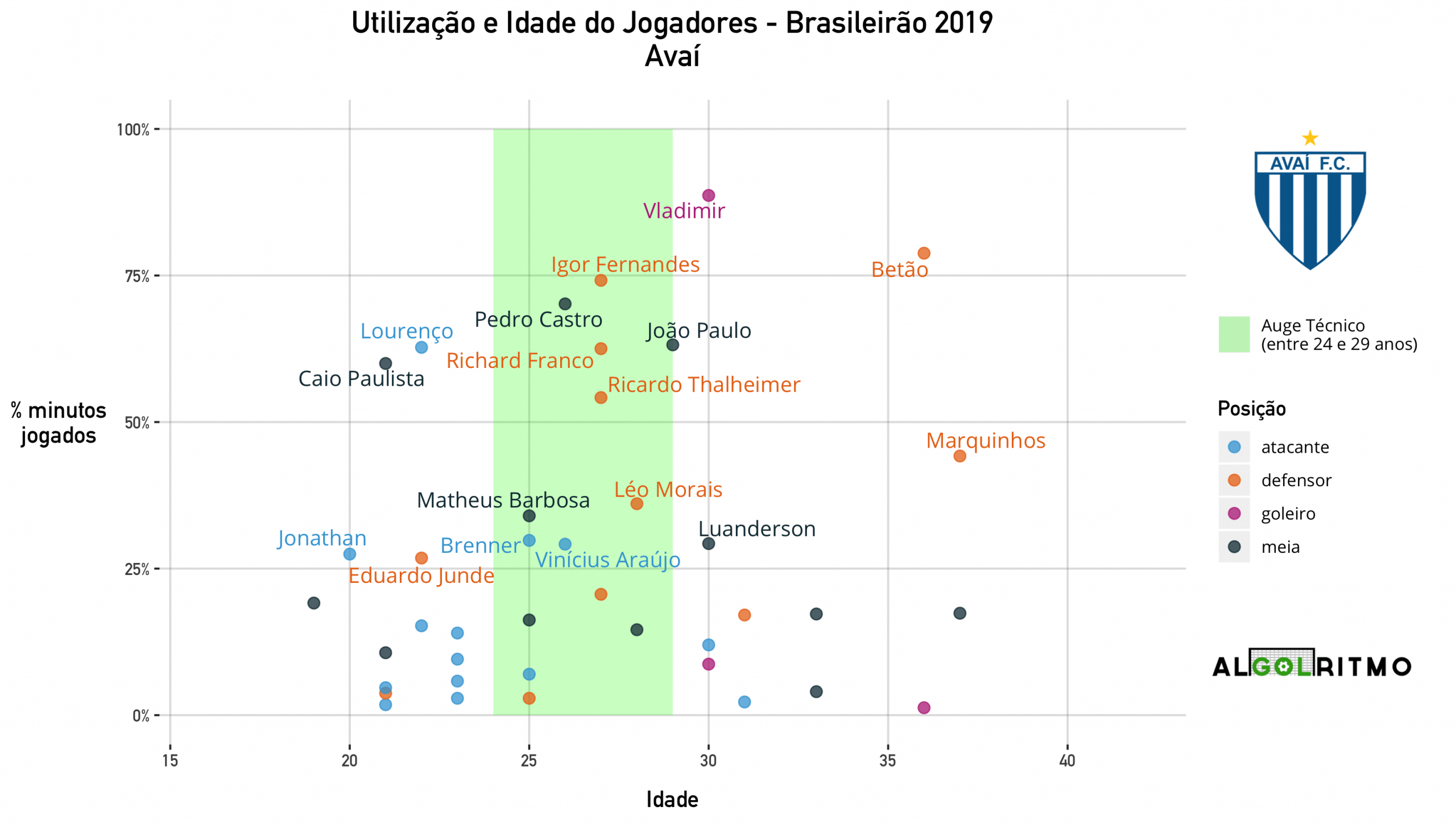 - O time do Internacional é mais velho (seguindo o padrão de vários outros clubes do BR19). Jogadores experientes foram importantes nesse ano, mas a tendência é ter um declínio no desempenho no futuro.