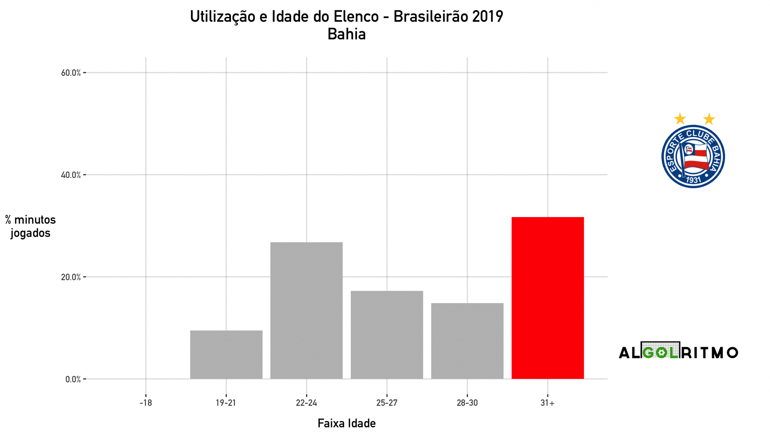 - O Bahia não economizou em minutos para jogadores mais experimentes como Lucas Fonseca e Nino Paraíba. O tricolor usou principalmente jogadores com mais de 30 anos ou entre 22 e 24.