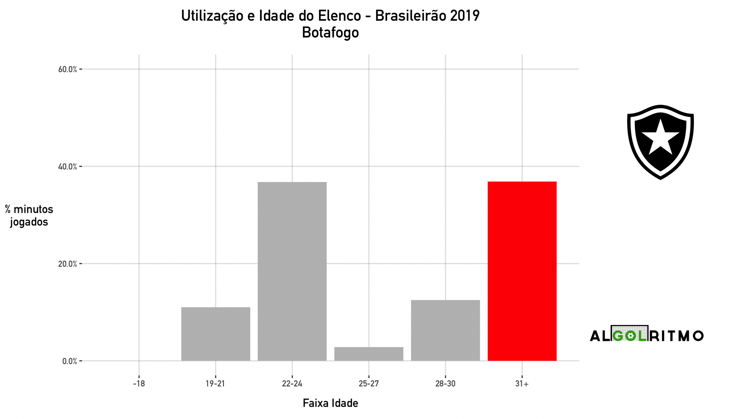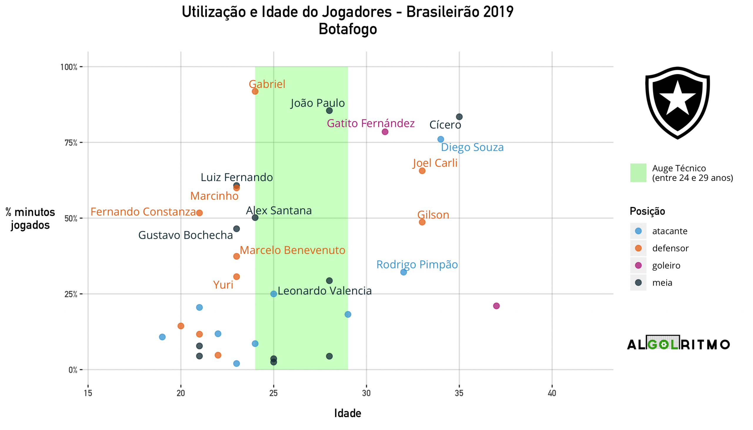 - O time do Botafogo nesse Brasileirão foi basicamente composto por uma mescla de jogadores entre 22 e 24 anos com jogadores acima dos 30.