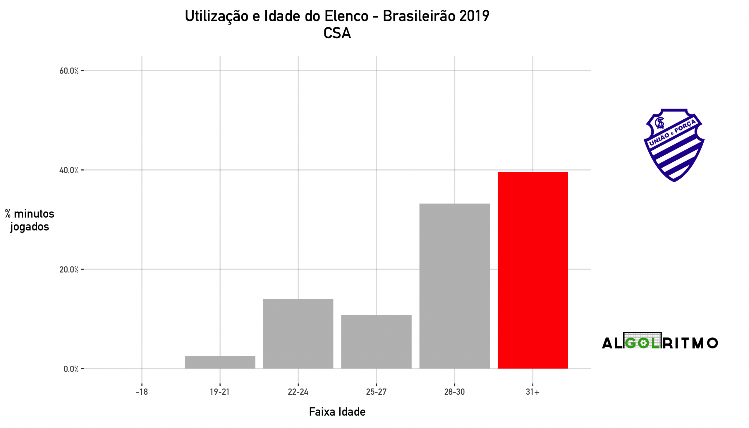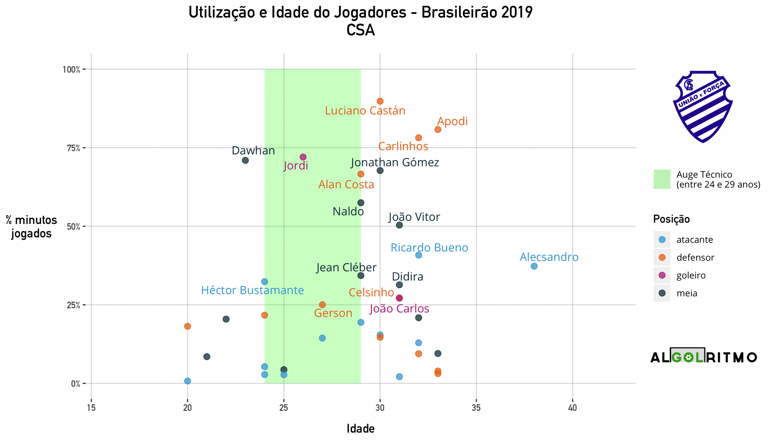 - Muitos minutos para jogadores acima dos 28 no CSA, o time precisará se renovar constantemente se não der oportunidades aos mais jovens.