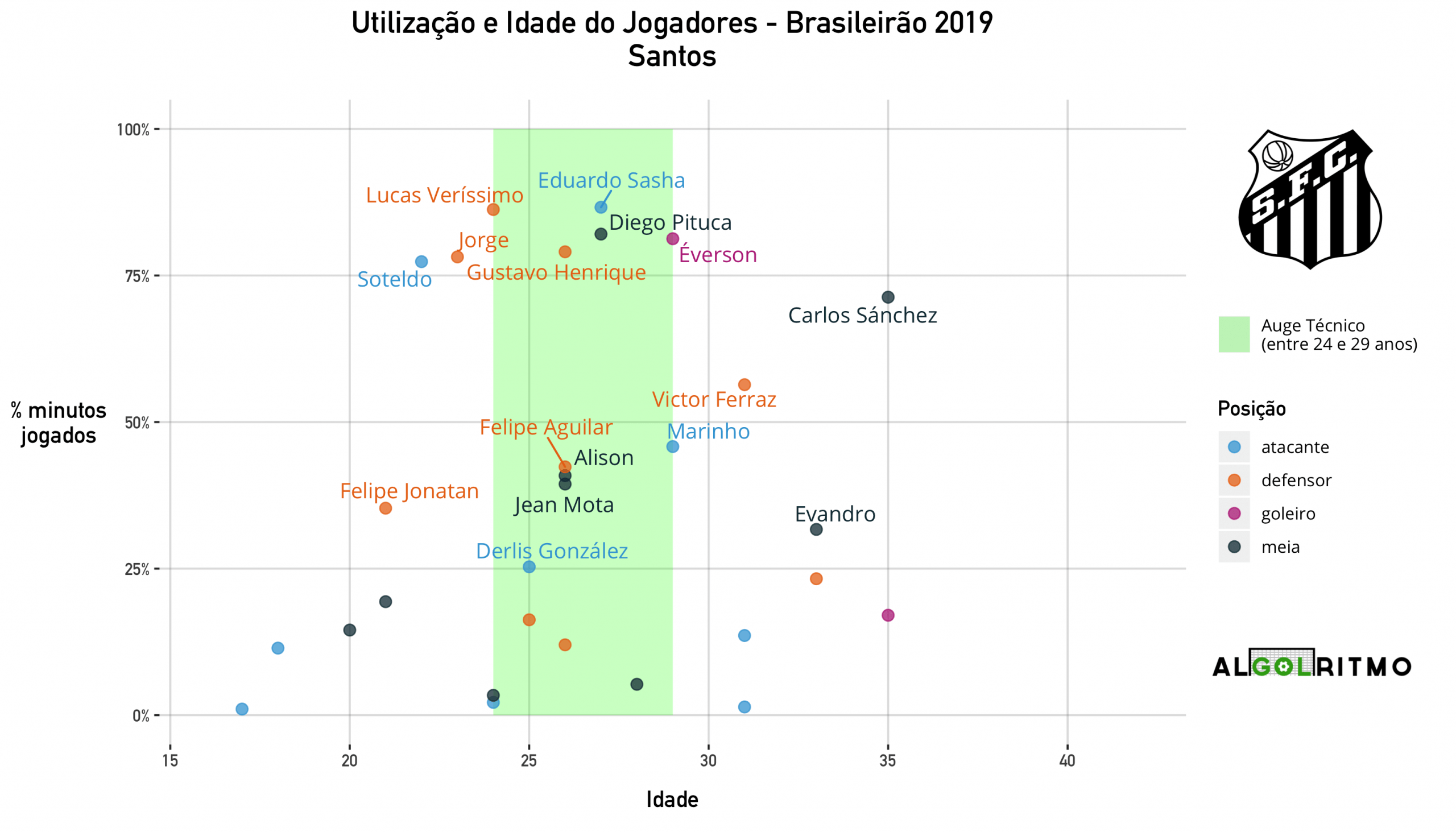 - O Santos tem um elenco curto e relativamente jovem. Nesse ano não tivemos muitos meninos da vila no time principal, e Sampaoli deu minutos aos jogadores com mais de 22 anos. Sánchez, com 35 anos, rendeu como um jovem nesse time